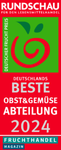 Wir wurden mehrmals mit dem Deutschen Fruchtpreis ausgezeichnet, der die höchste Anerkennung für die beste Obst- und Gemüseabteilung des Landes darstellt. Diese Auszeichnung haben wir in den Jahren 2013 bis 2018, sowie 20202021, 2023 und 2024 bereits historische zehn Mal erhalten und wurden somit zum Bundes- und Landessieger gekürt.